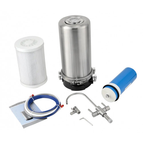 In a class of its own, high-end water purification system that offers a Small footprint, easy change filters, strong stainless steel housing 1000GPD membrane.